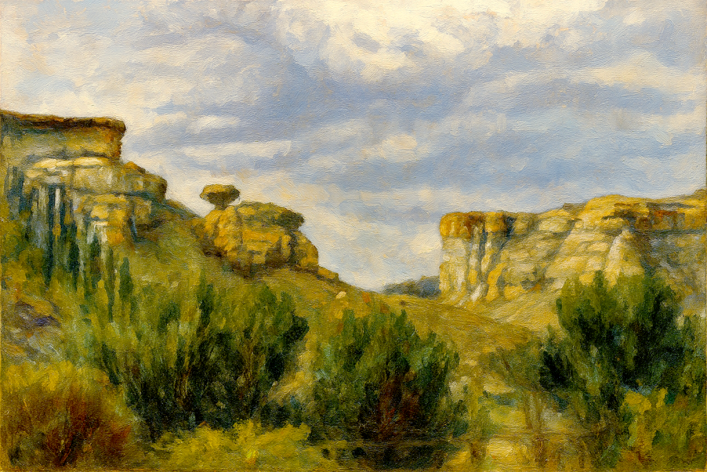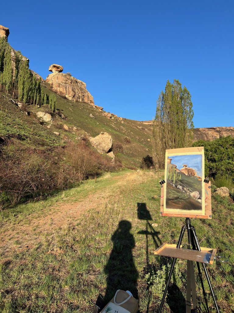 Join me for an unforgettable week of painting in the breathtaking landscape of the Golden Gate National Park and surrounding areas. Nestled at the foot of the Maluti Mountains, St Fort Farm, home of the famous mushroom rock, provides the perfect setting for a Plein Air retreat, with endless vistas, sandstone cliffs, rolling farmlands, and the vibrant colours of autumn.. and is tailored for artists seeking a unique blend of artistic expression and creative connection.